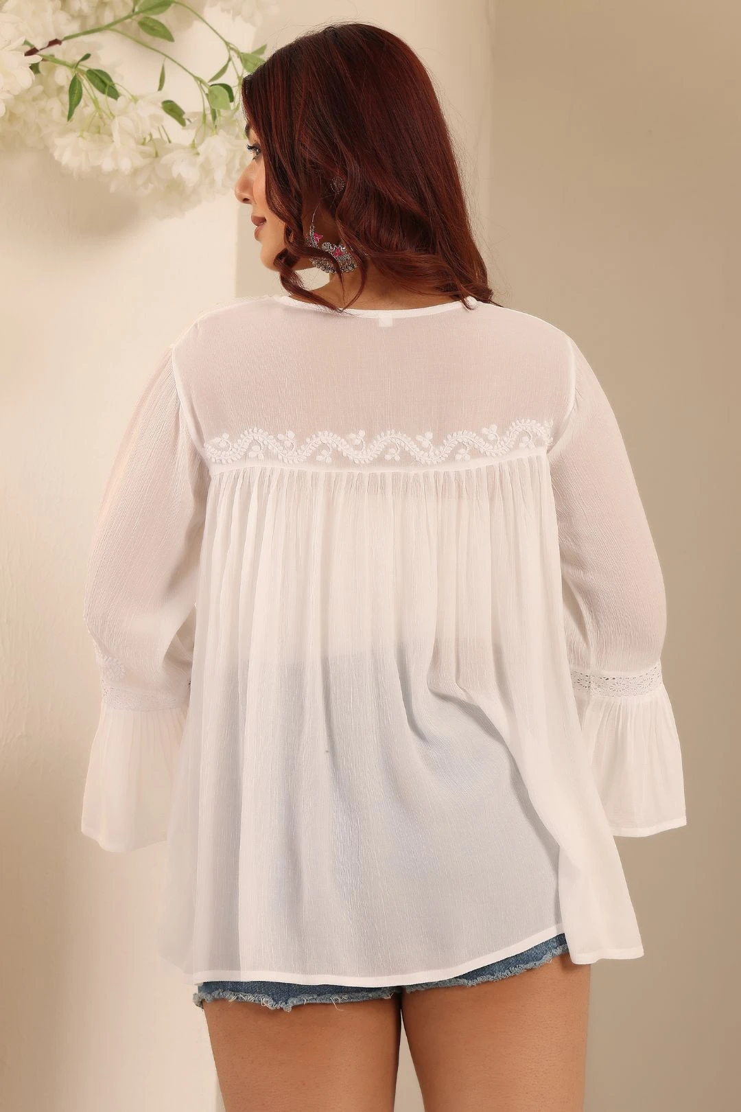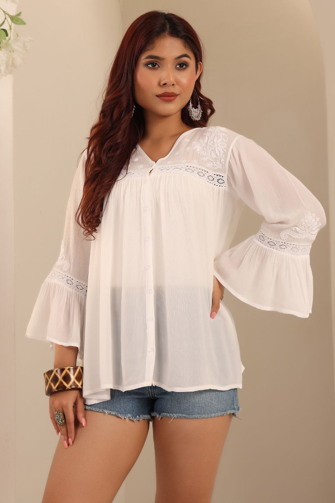 all chikankari tops tunics button-down top white